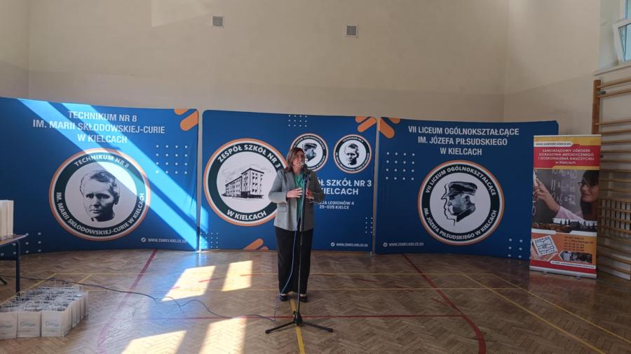 Na naszej uroczystości obecna była pani Grażyna Dekiel świetokrzyski wicekurator oświaty, pani Barbara Dziedzic Dyrektor Samorządowego Ośrodka Doradztwa Metodycznego i Doskonalenia Nauczycieli w Kielcach, pani Iwona Kijewska Dyrektor Zespołu Szkół nr 3 w Kielcach. Serdecznie powitaliśmy także panią Patrycję Tocką szefową Biura Poselskiego Jagny Marczułajtis-Walczak.