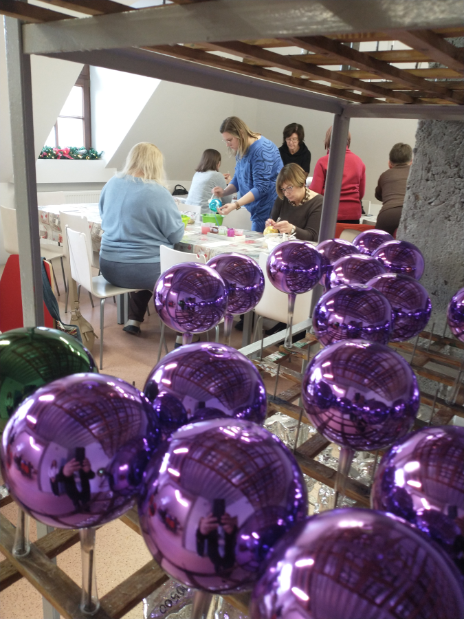 „Dom Bańki”to placówka muzealno- edukacyjna działająca przy firmie Mysteria – renomowanej manufakturze ozdób choinkowych, której wyroby, błyszczą w zbiorach kolekcjonerów i na bożonarodzeniowych drzewkach na całym świecie. W czasie zajęć uczestnicy poznali proces tworzenia bombek choinkowych – od rurki szklanej do kolorowych, błyszczących bombek o przeróżnych kształtach i wzorach. Zobaczyli wystawę wyjątkowych, ręcznie dmuchanych i zdobionych szklanych ozdób choinkowych z manufaktury Mysteria oraz antycznych baniek pochodzących z polskich i europejskich wytwórni. Warsztaty artystyczne obejmowały własnoręczne dekorowanie szklanej ozdoby świątecznej (projektowanie motywu zdobniczego, malowanie, brokatowanie). Szkolenie było kolejną, udaną propozycją działań prowadzących do wzbogacenia warsztatu pracy nauczyciela oraz szukania sposobów na atrakcyjne i wartościowe zajęcia edukacyjne. Taka forma zajęć wpisuje się w realizację propozycji nowej podstawy programowej.