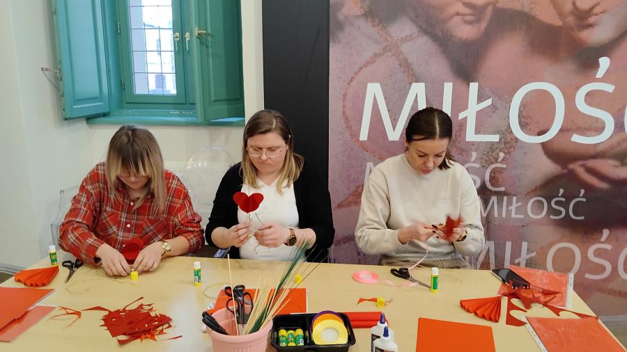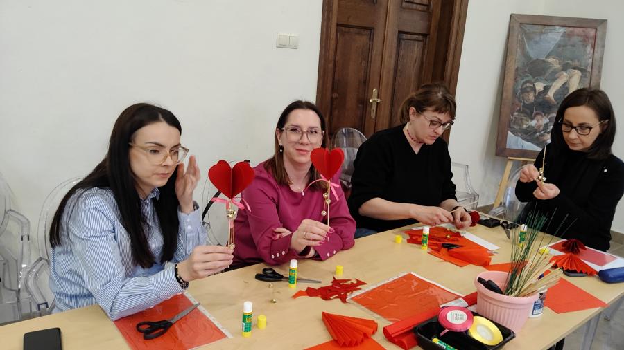 Inspiracją spotkania była wystawa czasowa ,,Miłość” w Muzeum Narodowym w Kielcach. Ekspozycja poświęcona jest zagadnieniom głęboko wnikającym w ludzką emocjonalność i jednocześnie z tej emocjonalności wynikającym. Miłość towarzyszy ludziom od zawsze, jest też jedną z najważniejszych bohaterek sztuki, jest tą, dzięki której tworzenie w ogóle jest możliwe. Wielowymiarowość tego uczucia sprawia, że niezliczone są wręcz sposoby jej obrazowania.   Wystawa jest wędrówką przez bogaty świat mitologii, Biblii, literatury, ale też alegorii, personifikacji, symboli, aż po wątki rodzajowe ściśle związane z przeżywaniem tego uczucia. W czasie spotkania analizowaliśmy różne sposoby wypowiedzi artystycznych uczucia miłości, często zaskakujące i prowokujące. Wzbogaceni artystycznymi doznaniami, opracowaliśmy propozycje działań edukacyjnych i wychowawczych odnoszących się do uczuć związanych z miłością. W części warsztatowej spotkania, wykonywaliśmy w różnych technikach plastycznych, formy dekoracyjne z serduszkiem w motywie przewodnim.
