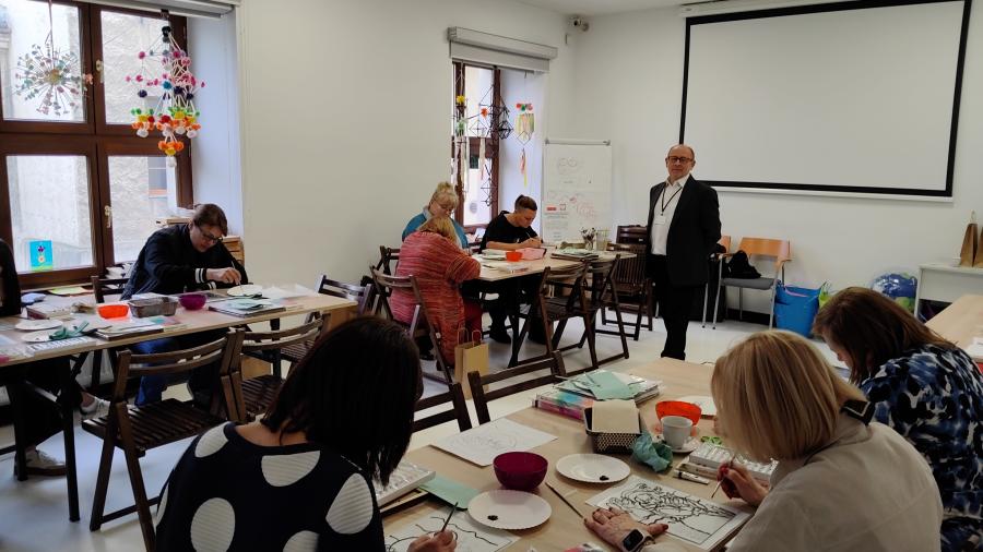 W trakcje spotkania poznaliśmy historię i tajniki malarstwa na szkle. Opracowaliśmy propozycje działań edukacyjnych i wychowawczych, wynikających ze sztuki ludowej w kontekście malarstwa na szkle. Pozwolą one na uatrakcyjnienie i wzbogacenie nie tylko edukacji plastycznej, ale również działań wychowawczych i terapeutycznych.