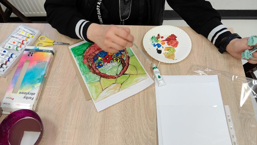 W części warsztatowej, inspirując się muzealną ekspozycją, wykonaliśmy malarskie dzieła na szkle.